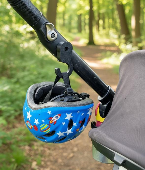 Stroller Hook for Moon - Simplify your strolls with one sturdy hook that attaches to any stroller. Strong enough to carry up to 10 kg, it keeps bags, toys, or shopping secure while you focus on enjoying the walk. Lightweight, practical, and made to make life with little ones easier. The hook attaches to the existing stroller knob, as shown in the photos. Please ensure you have this knob before purchasing the item. Comes as a single piece unless you select “I want a pair of hooks,” in which case we deliver two symmetrical hooks that can be attached to each side of the stroller.